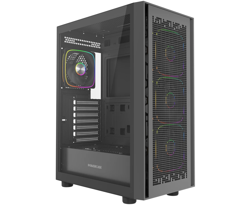 Корпус Powercase ByteFlow Black V2 (CBFB-A4-V2), Tempered Glass, 4x 120mm ARGB fans, чёрный, ATX