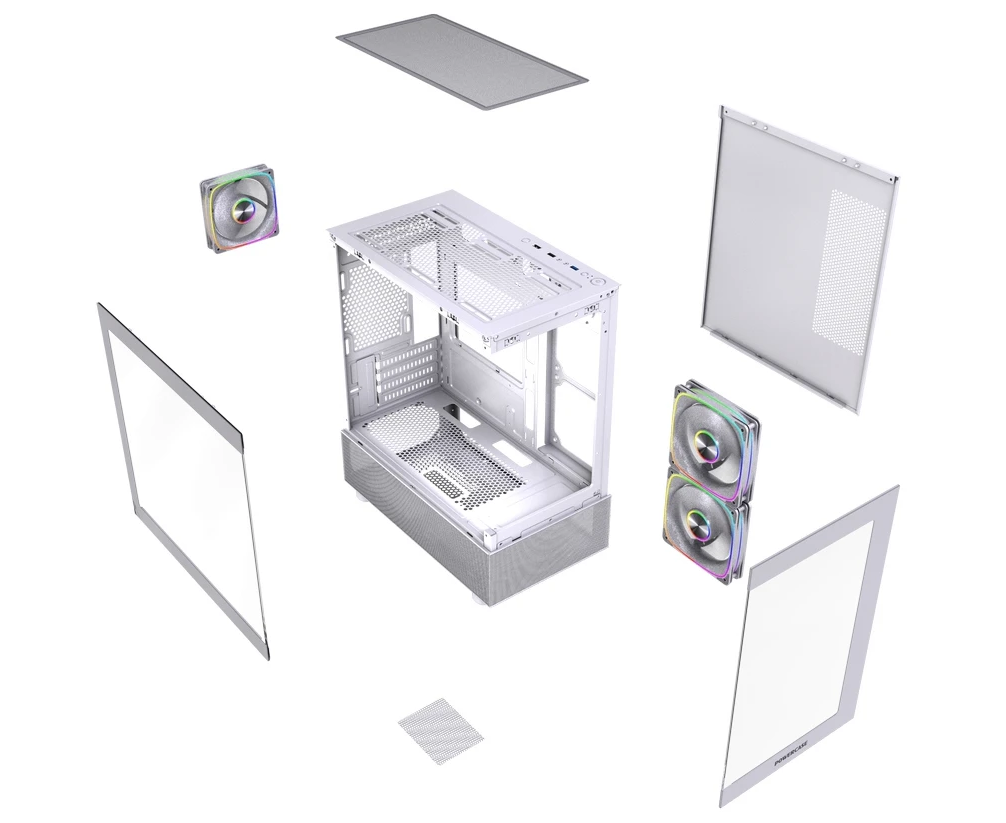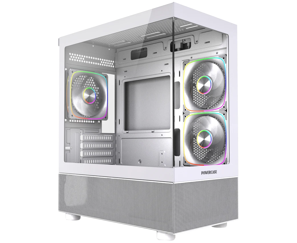 Корпус Powercase Vision Micro M2 ARGB (CVMWM2-A3), Tempered Glass, 3x 120mm ARGB PWM Fan, белый, mATX