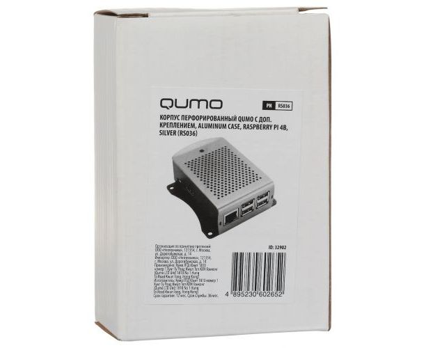 Корпус Qumo (RS036) перфорированный с доп.креплением, Aluminum Case, Raspberry Pi 4B, silver