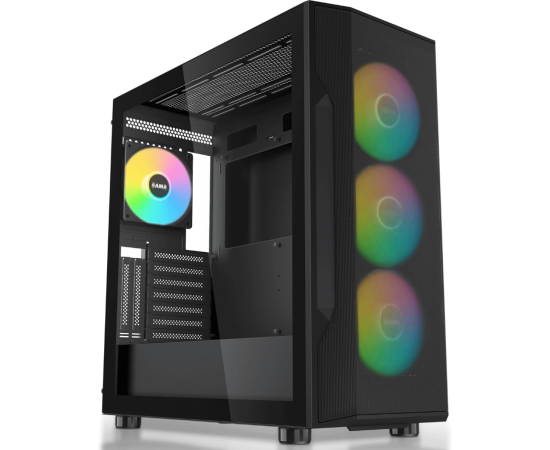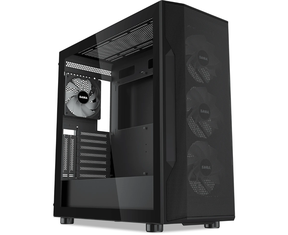 Корпус SAMA S40 Black (S40-BKAPA4X1-GL) без БП, Midi-Tower, TG, 4x120mm ARGB, 2xUSB 3.0 + 1xUSB 3.1 Type-C, ATX, mITX