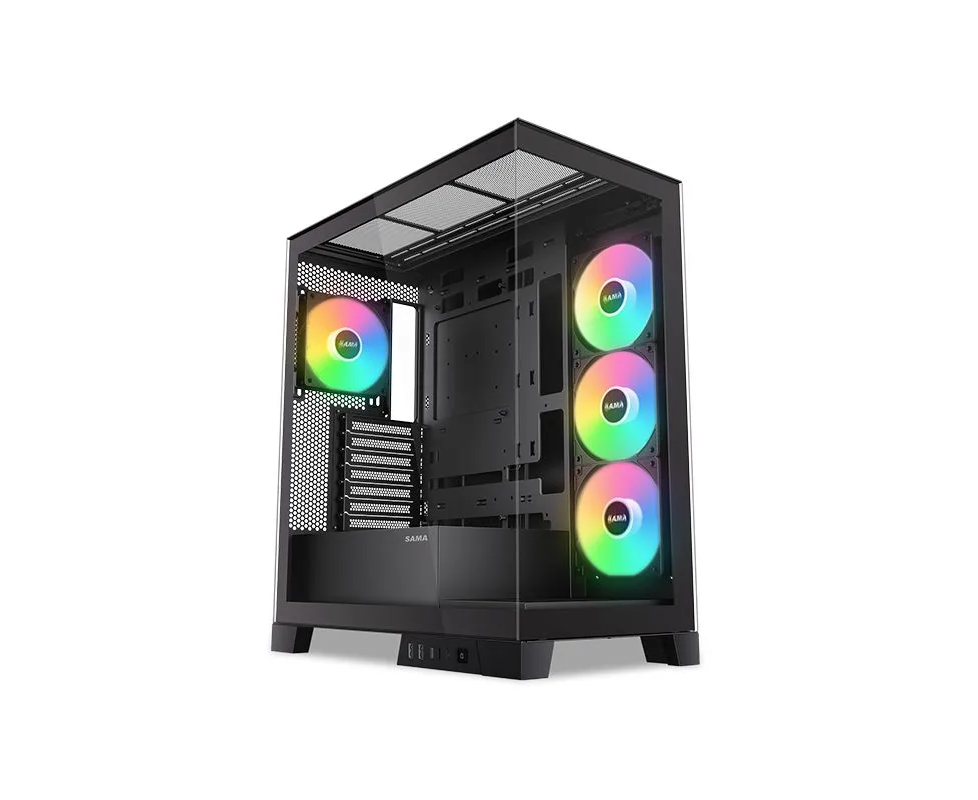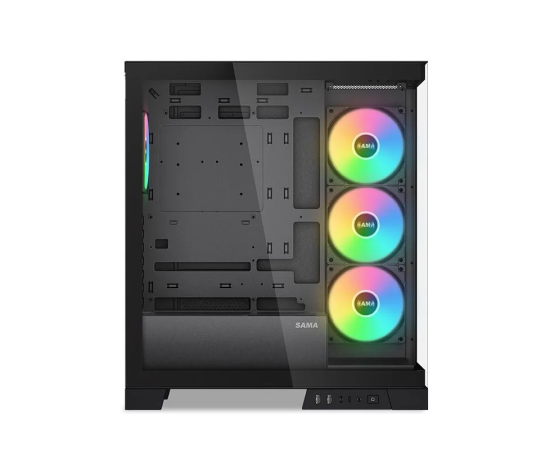 Корпус SAMA V50 Black (V50-BKADA4X1-GL) без БП, Midi-Tower, TG, 4x120mm ARGB, 2xUSB 3.0 + 1xUSB 3.1 Type-C, ATX, mITX