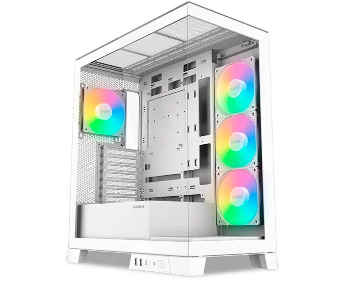 Корпус SAMA V50 White (V50-WHADA4X1-GL) без БП, Midi-Tower, TG, 4x120mm ARGB, 2xUSB 3.0 + 1xUSB 3.1 Type-C, ATX, mITX