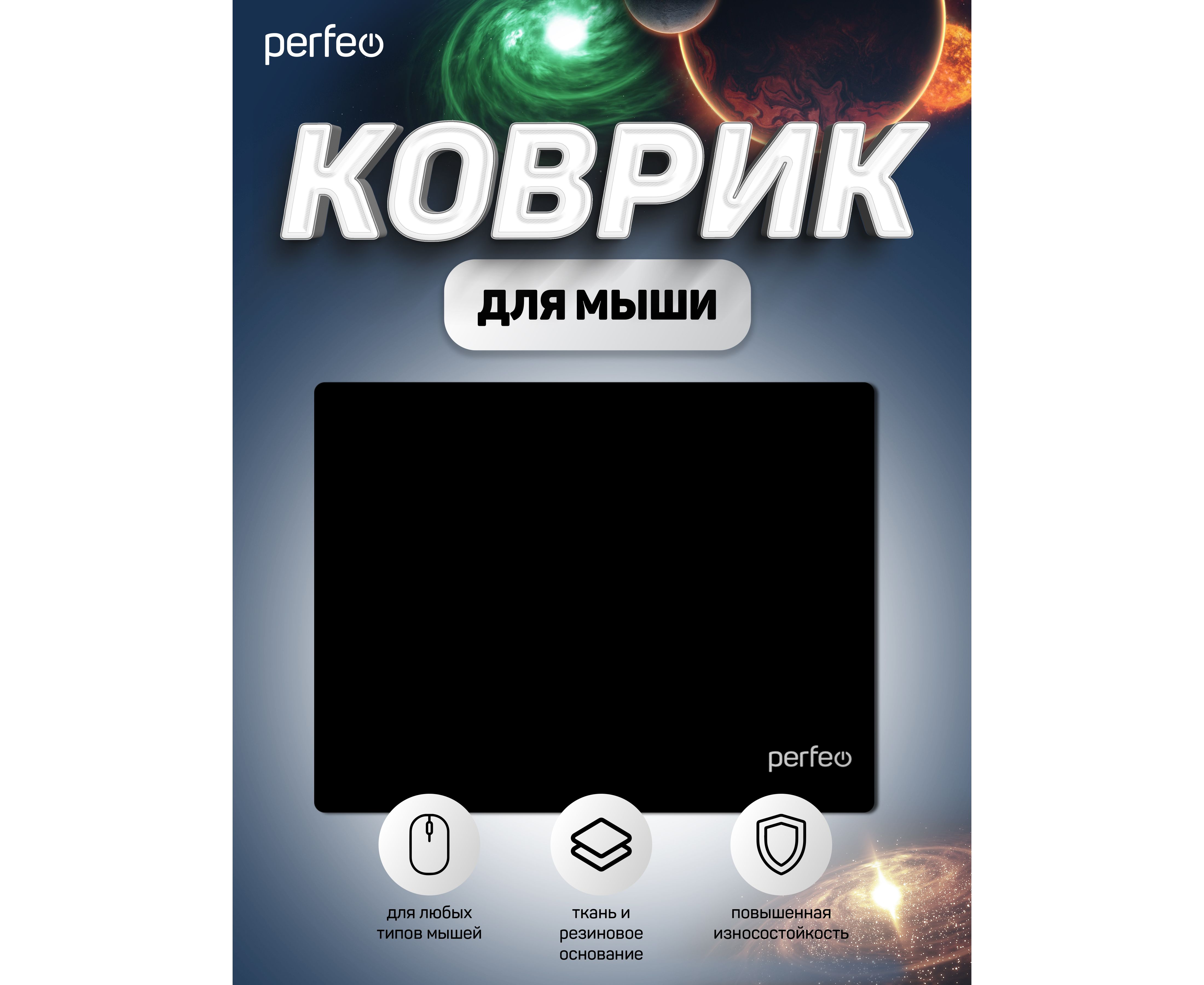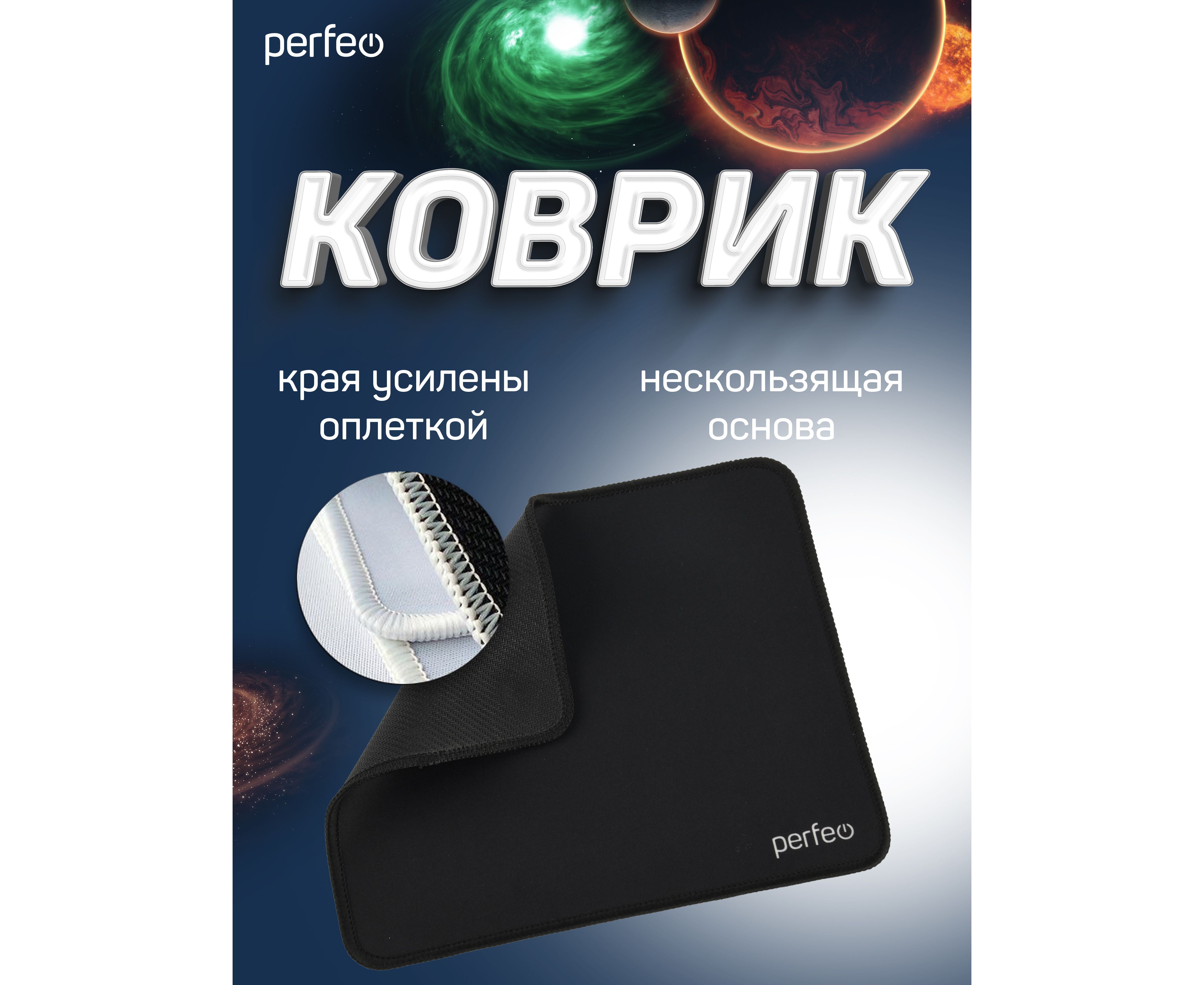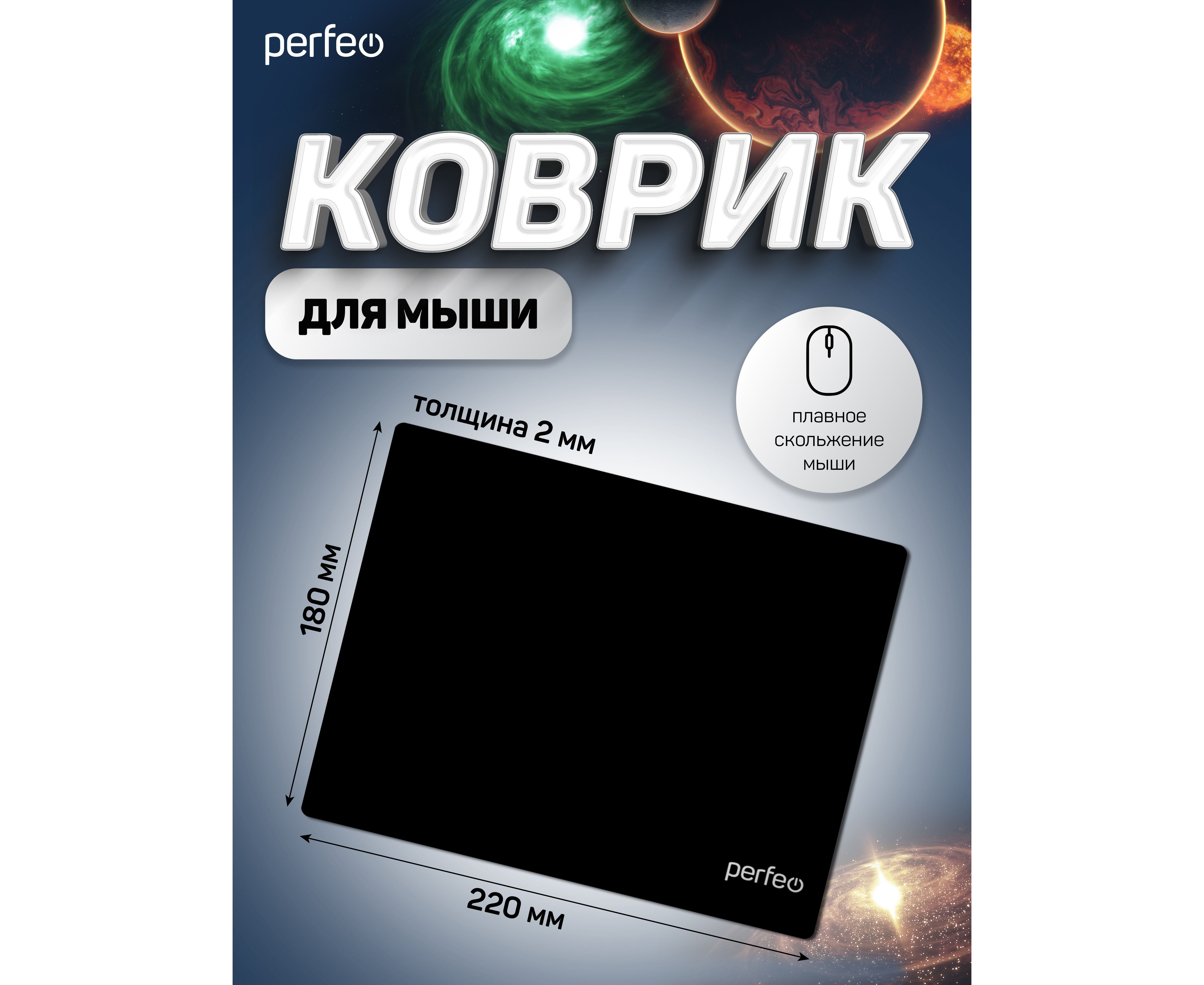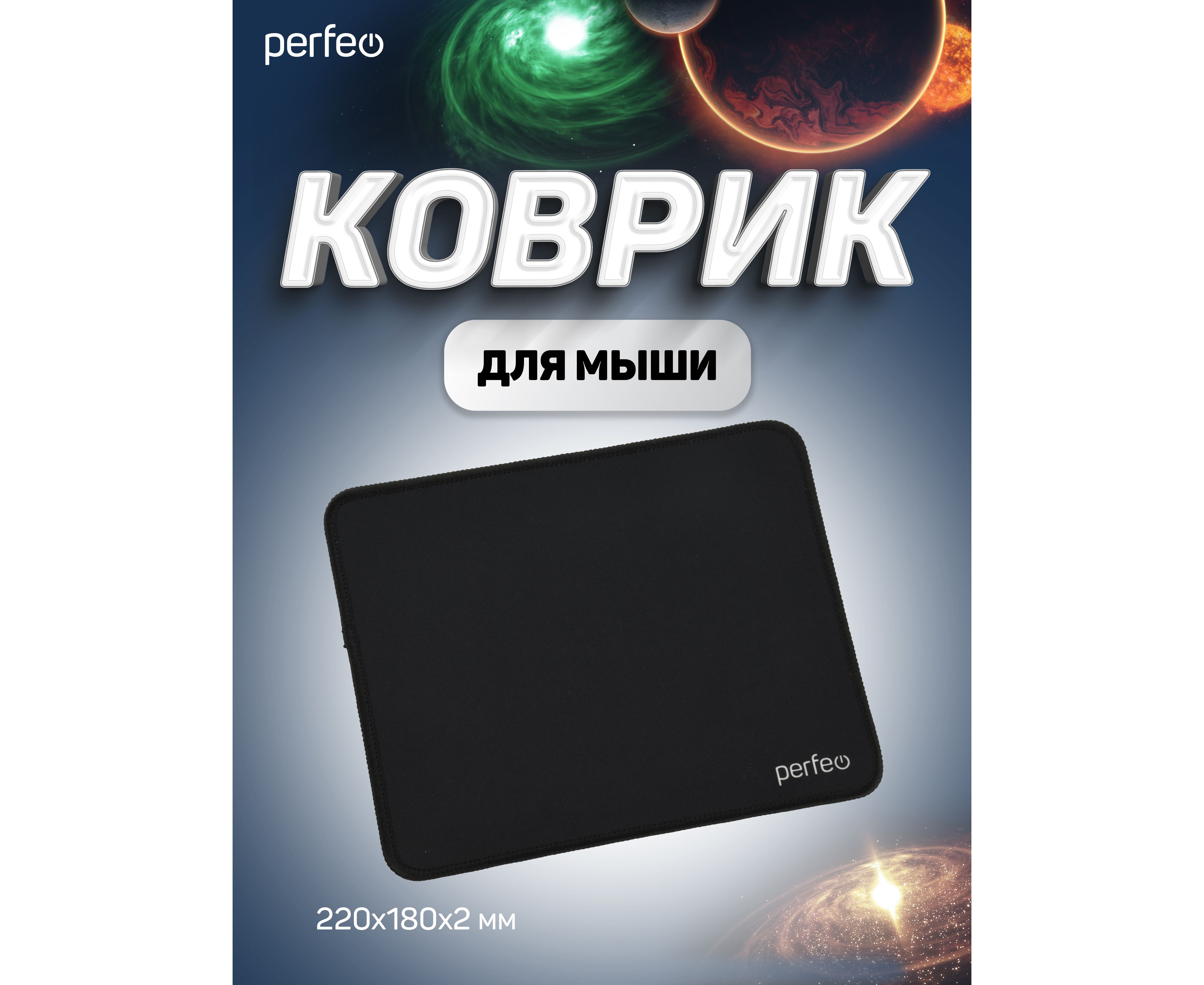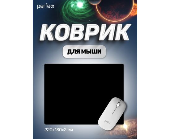 Коврик для компьютерной мыши Perfeo "Black", "Чёрный", (180*220*2 мм),ткань+резиновое основание