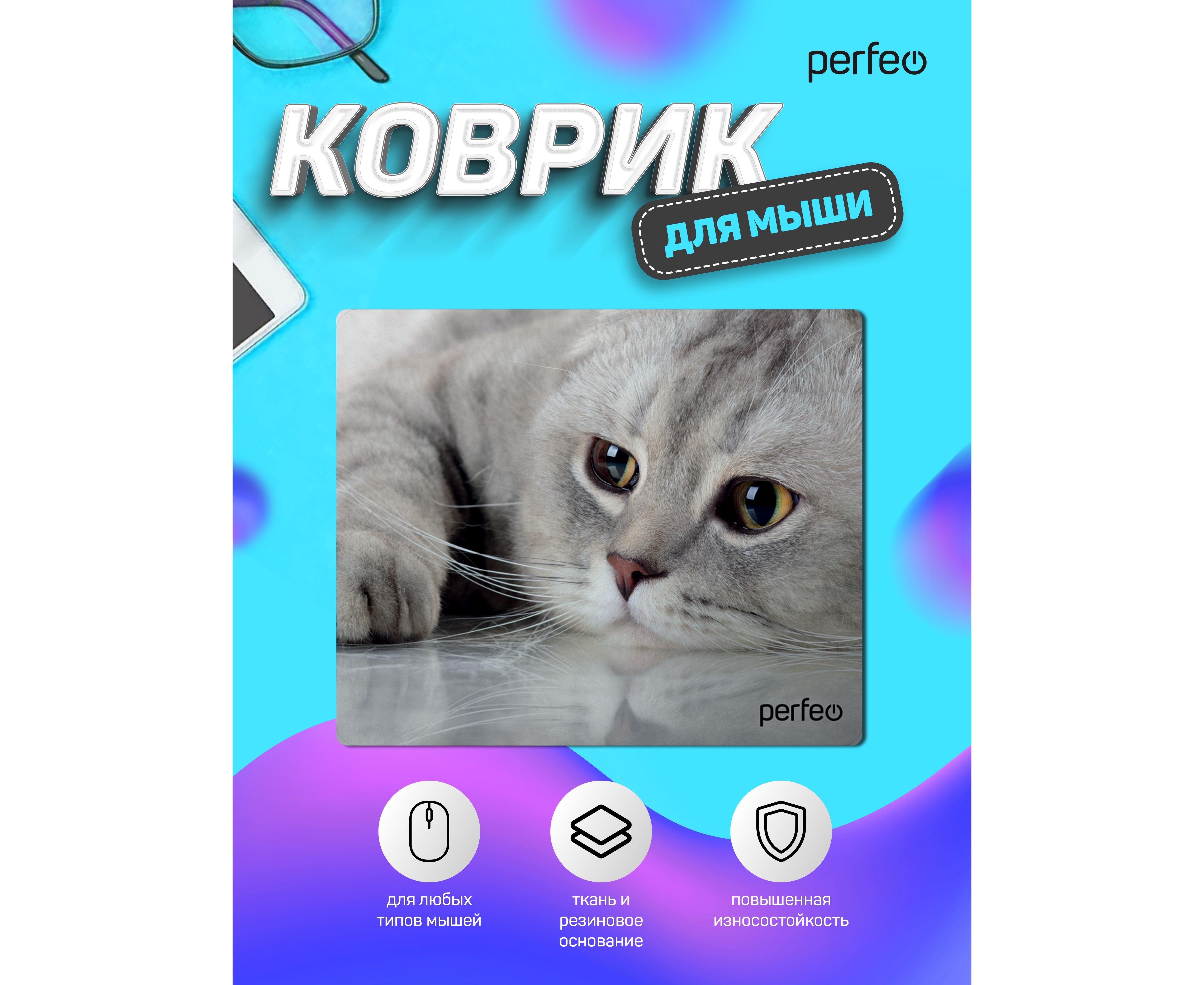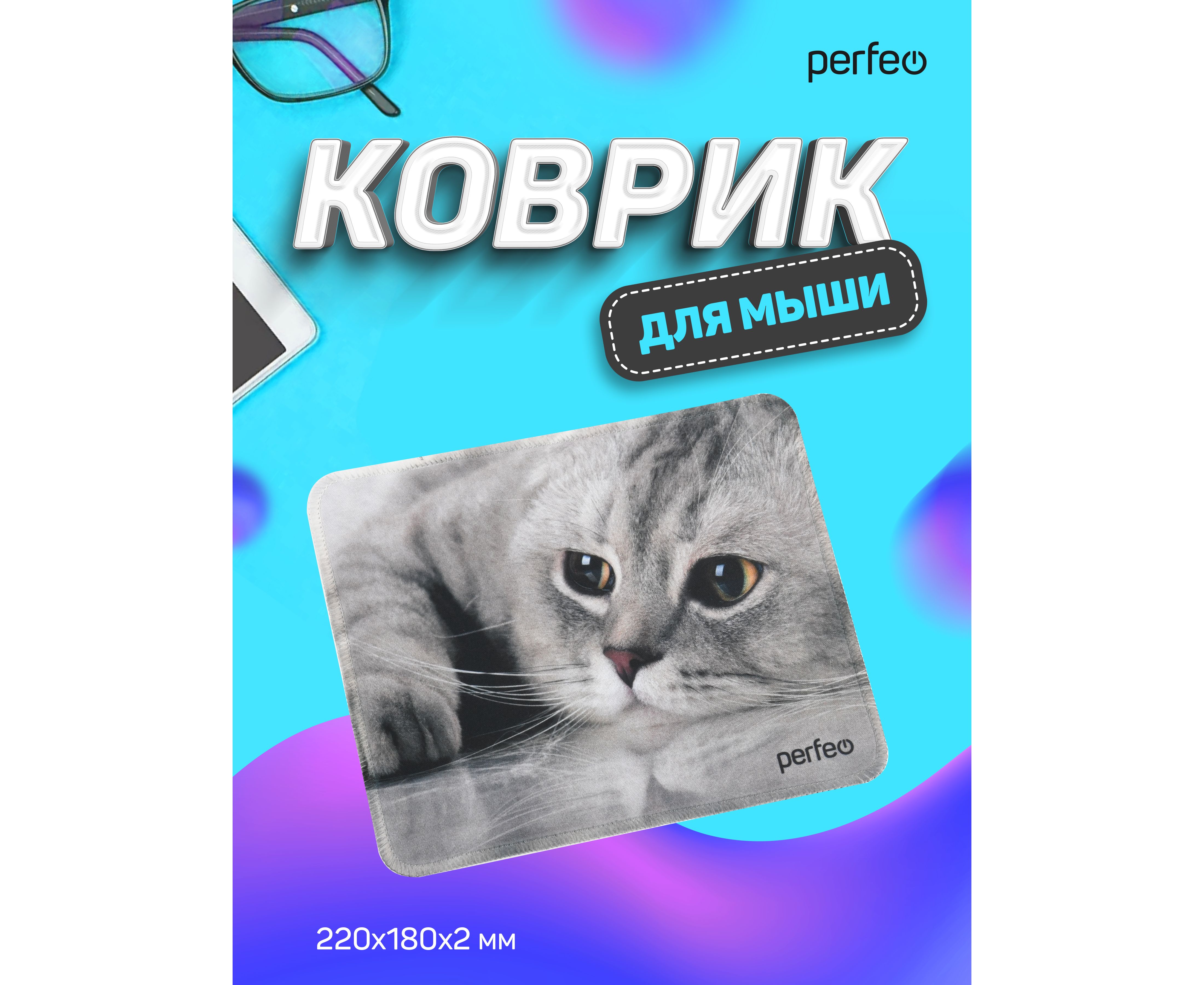 Коврик для компьютерной мыши Perfeo "Cat", Рис.22 (180*220*2 мм), ткань+резиновое основание