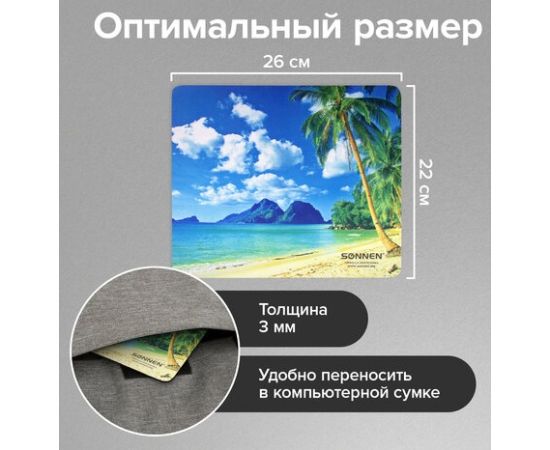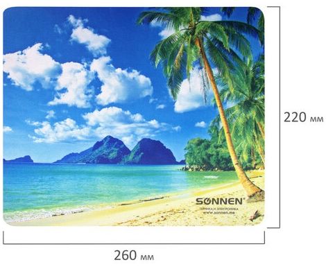 Коврик для мыши Sonnen 513294 BEACH, резина + ткань, 260х220х3мм