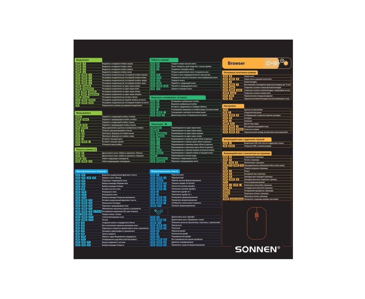 Коврик для мыши Sonnen Hot Keys 513961 800х400х3мм