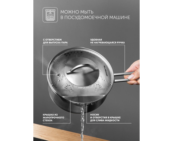многослойное дно; мерная шкала: есть; материал крышки: стекло; материал ручек: сталь