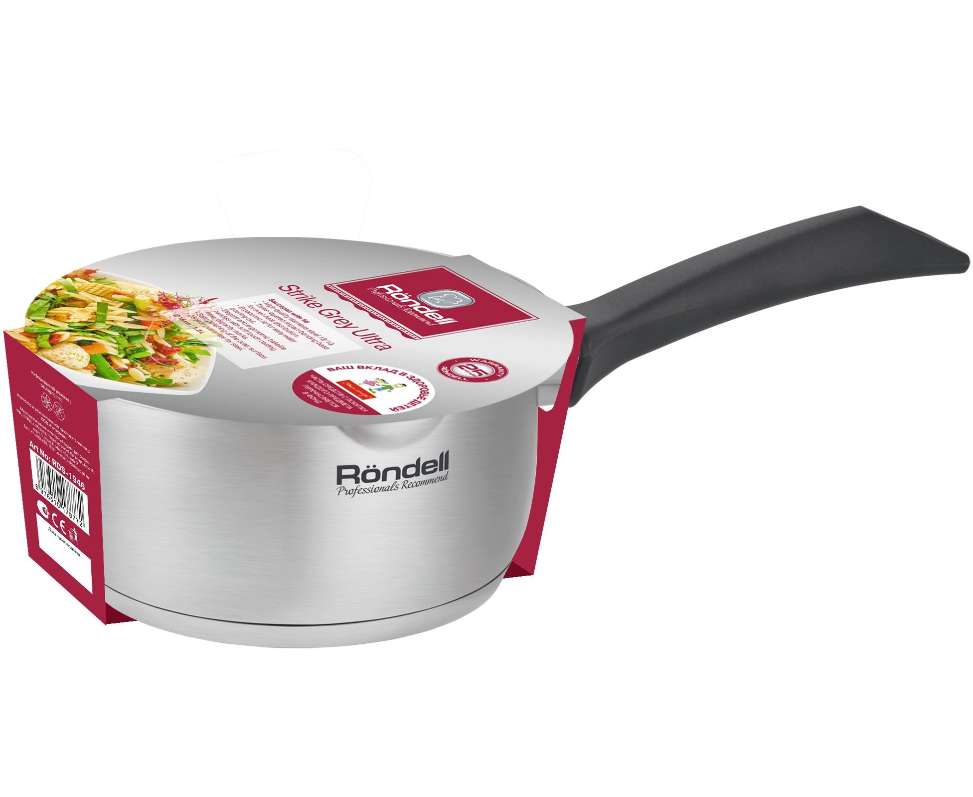 Ковш Rondell Strike Grey Ultra RDS-1946 1.3л. d=16см (с крышкой) стальной
