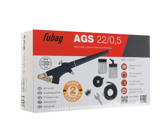 Аэрограф FUBAG 110101 - это инструмент, работающий на сжатом воздухе, используемый для профессиональных работ. Область применения - окраска поверхностей. Устройство оснащено прямой узкой рукоятью (ее удобно держать как карандаш) - для точного выполнения рисунков.