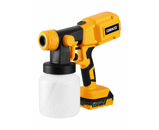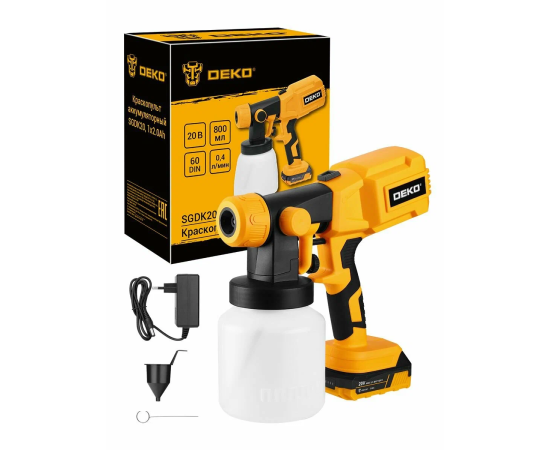 Аккумуляторный краскопульт DEKO SGDK20 — это ручной строительный инструмент для профессиональной и бытовой покраски. Оборудование предназначено для эффективного распыления краски при отделке стен и потолка, а также для побелки деревьев в саду.