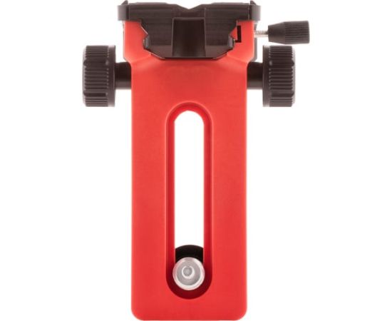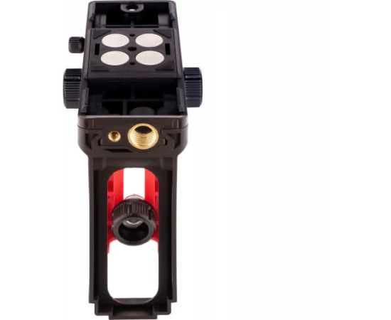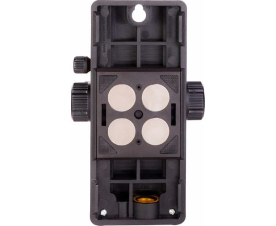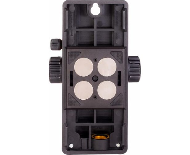 Крепление оснащено мощными неодимовыми магнитами, которые надежно удерживают лазерный прибор на поверхности. Микролифт позволяет выбирать положение лазерного уровня в диапазоне от 0 до 11 см. Регулировка высоты производится с помощью двухсторонних ручек, а выбранное положение фиксируется винтом.