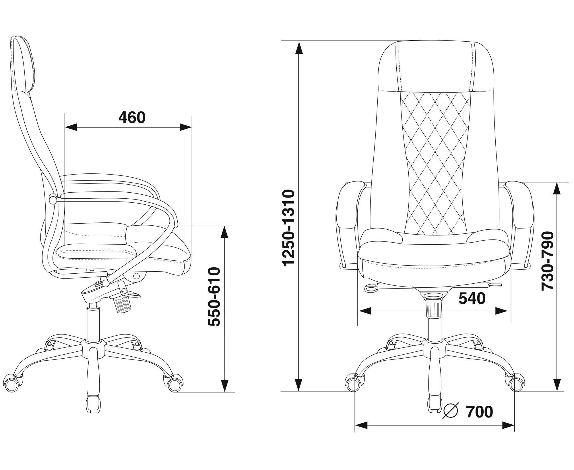 Высота с подлокотниками MIN