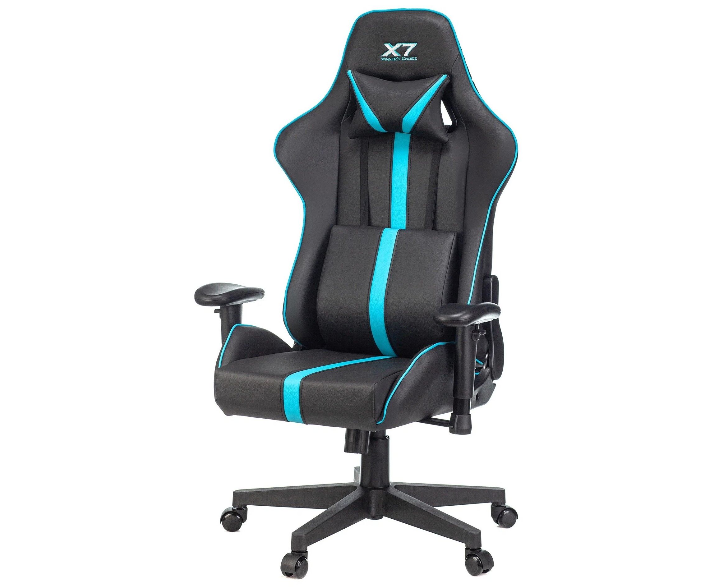 Кресло игровое A4Tech X7 GG-1200 черный/голубой искусственная кожа крестов. пластик