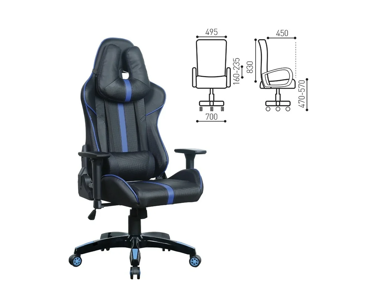Кресло игровое BRABIX GT Carbon GM-120 (531930) на колесиках, эко.кожа, 1шт. в комплекте черный/синий