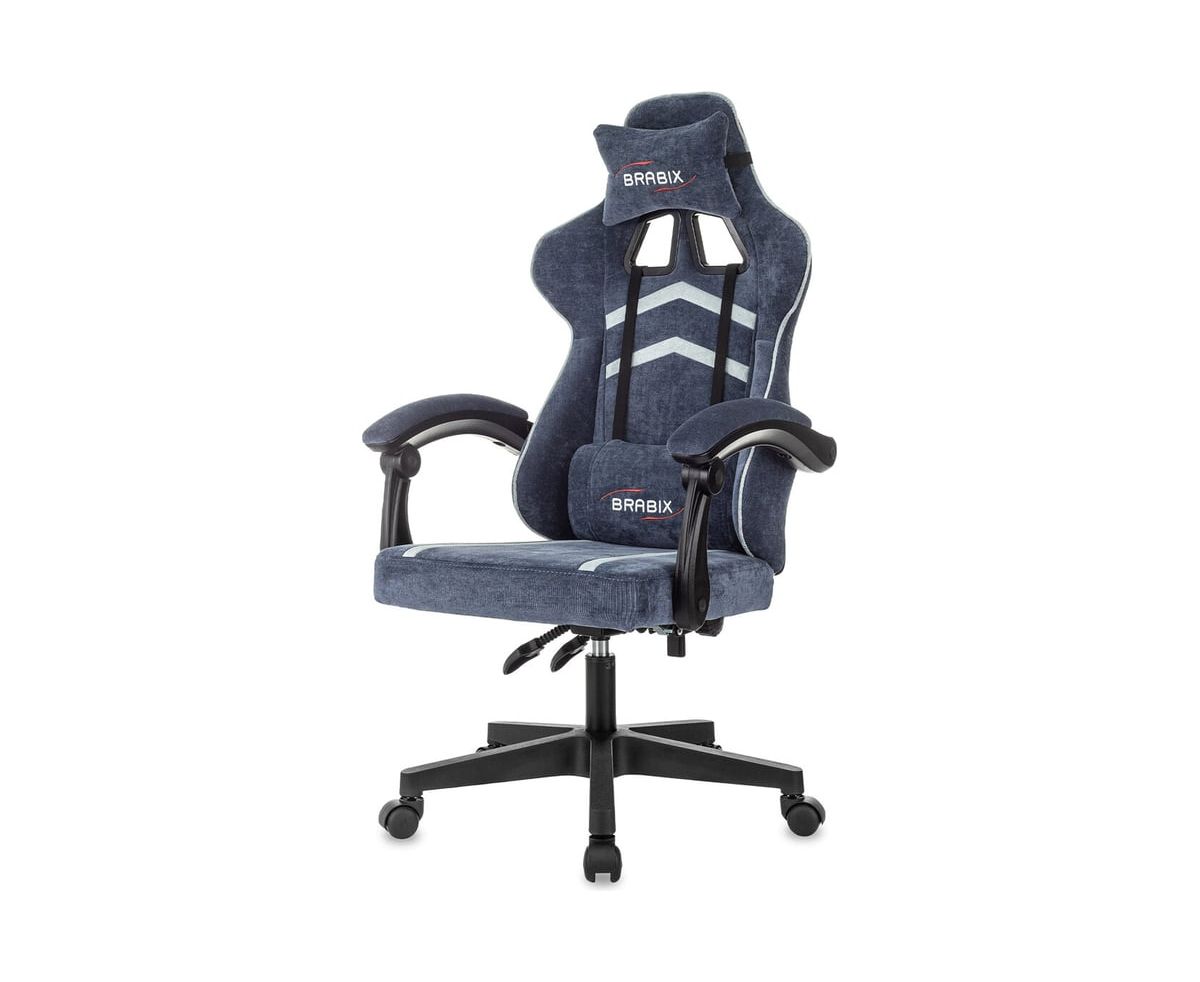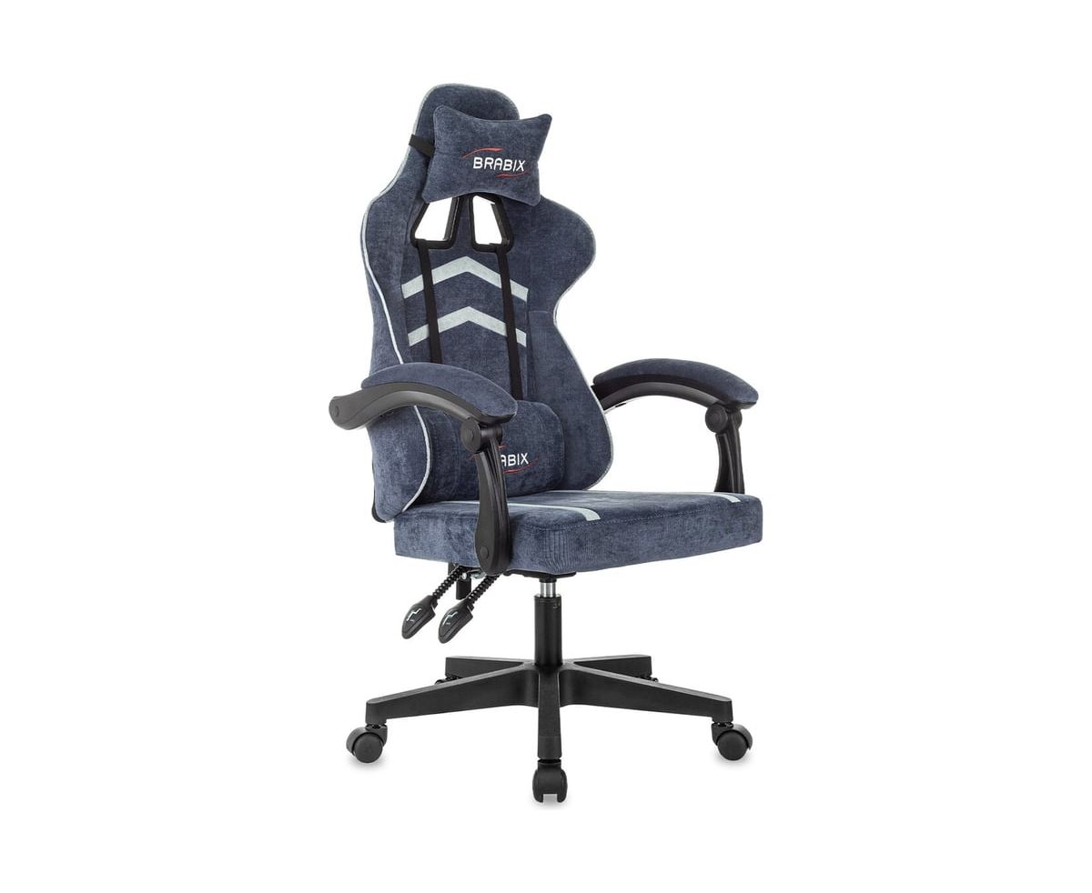 Кресло игровое BRABIX Shooter GM-123 (533212) 2 подушки, ткань, синее/серое