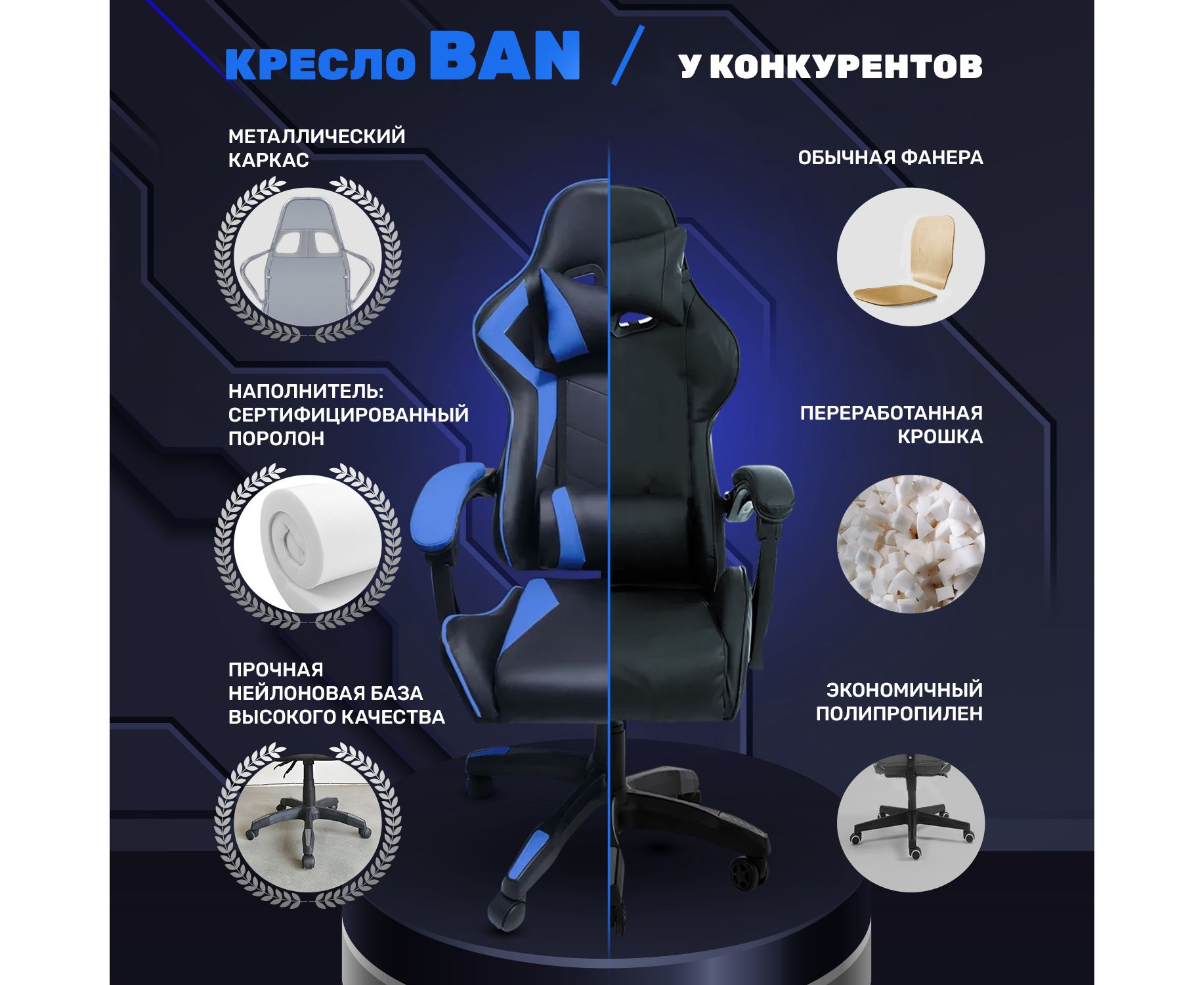 Игровое кресло Byroom Game BAN blue HS-5010-BL - это идеальное решение для тех, кто проводит много времени за компьютером с любимыми играми или рабочими задачами. Компьютерное кресло геймера обеспечивает комфорт и поддержку для спины, что позволяет играть более продуктивно и без усталости.
