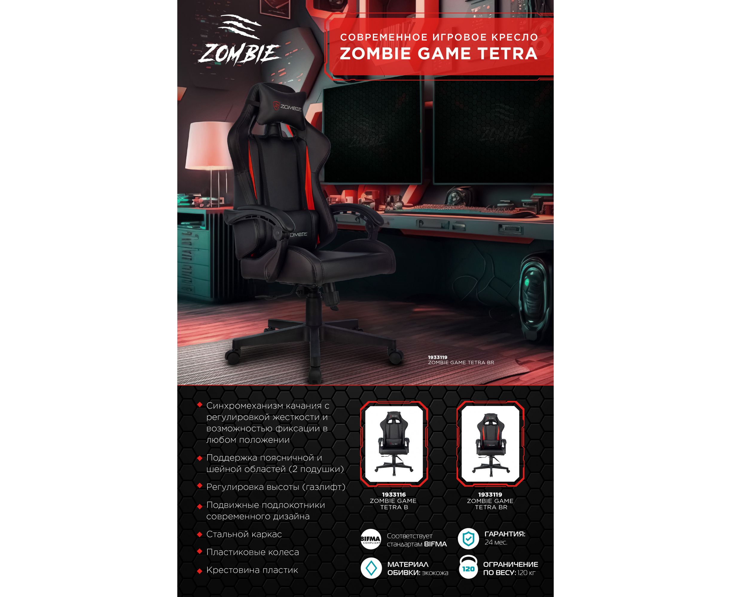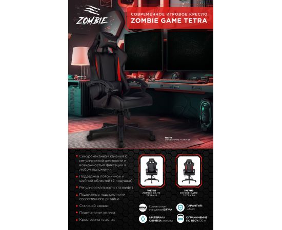 Кресло игровое Zombie Game Tetra BR черный/красный эко.кожа