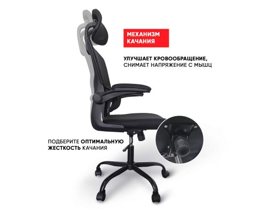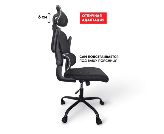 BYROOM Office Hype black HS-6305-1-B - это качественное и удобное кресло для офиса, которое имеет черный цвет и изготовлено из пластикового каркаса. Белая металлическая крестовина обеспечивает стабильность и надежность стула на колесиках для офиса . Спинка офисного кресла изготовлена из анатомически правильной сетки черного цвета, которая обеспечивает хорошую вентиляцию спины во время длительного сидения. Рабочее кресло имеет регулируемый подголовник, который помогает снять нагрузку со шеи и позволяет расслабиться во время перерыва. Компьютерное кресло для школьника и взрослого также оборудовано регулируемыми подлокотниками, которые обеспечивают дополнительный комфорт и поддержку рук. Подлокотники поднимаются, благодаря чему кресло можно задвинуть под стол. Кресло на колесиках BYROOM Office Hype black HS-6305-1-B также имеет поддержку поясницы, которая помогает поддерживать правильное положение спины. Она сама подстраивается под спину сидящего и обеспечивает снижение болей в пояснице. Эта мебель для дома и офиса может быть настроена по высоте на 10 см и может выдерживать нагрузку до 120 кг. Кресло разборное, что облегчает его сохранение и перевозку.