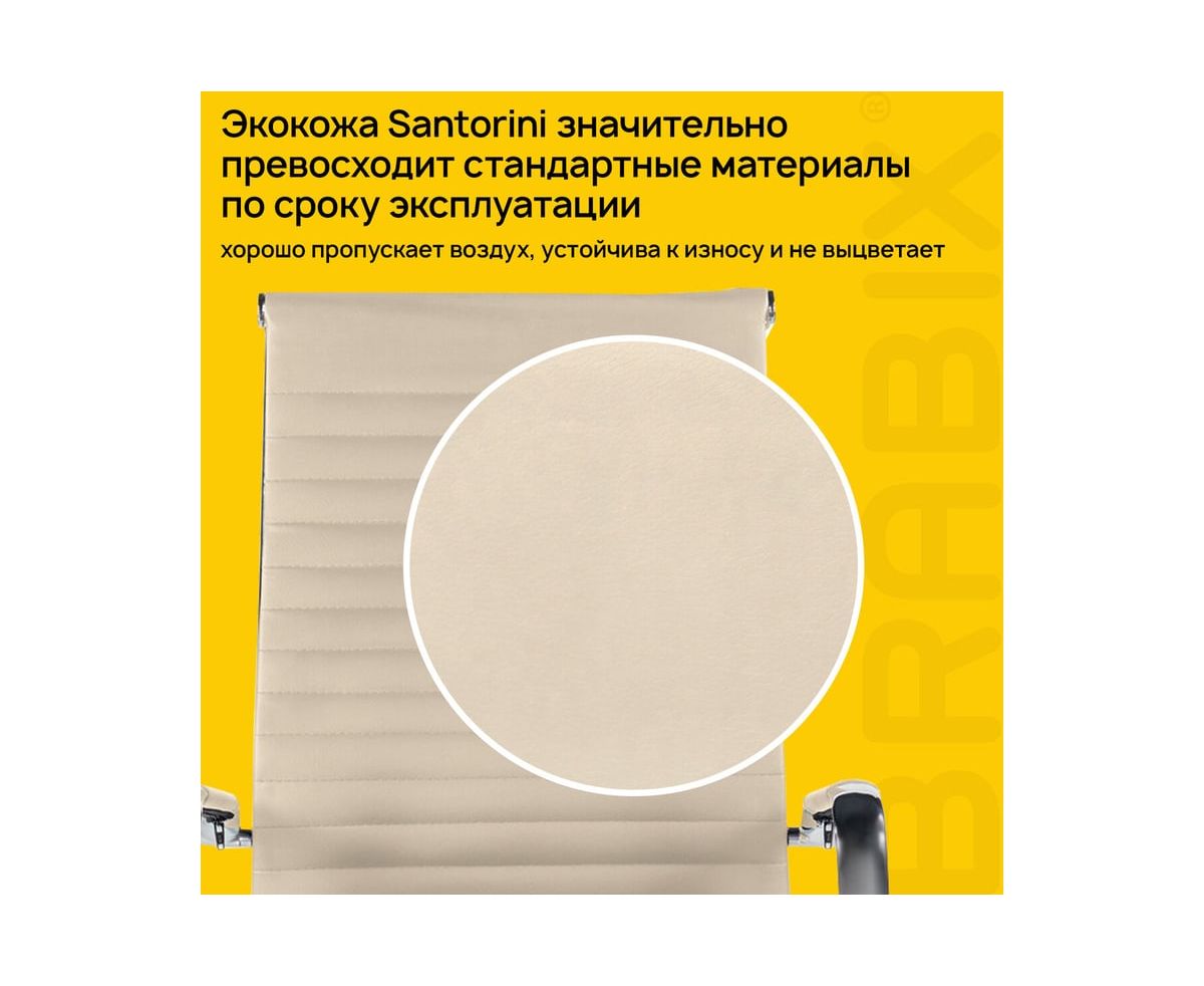 - Кресло изготовлено из высококачественной экокожи "santorini" бежевого цвета, которая выглядит не только элегантно, но и обеспечивает невероятный комфорт благодаря мягкой и приятной на ощупь поверхности