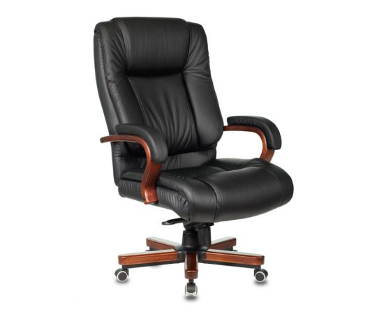 Кресло руководителя Бюрократ T-9925WALNUT/Black черный кожа крестовина дерево