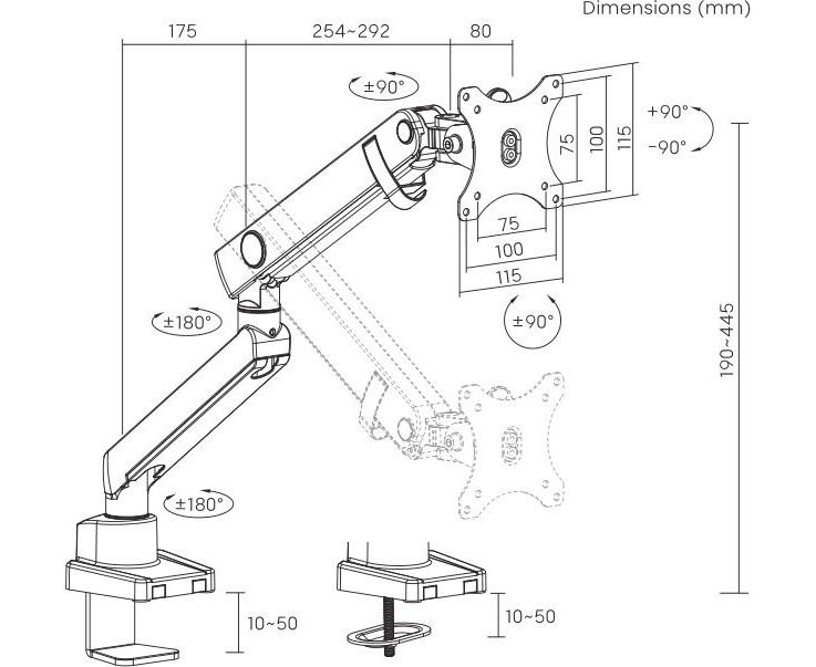 Особенности: Настольный кронштейн для монитора с системой газ-лифт.
