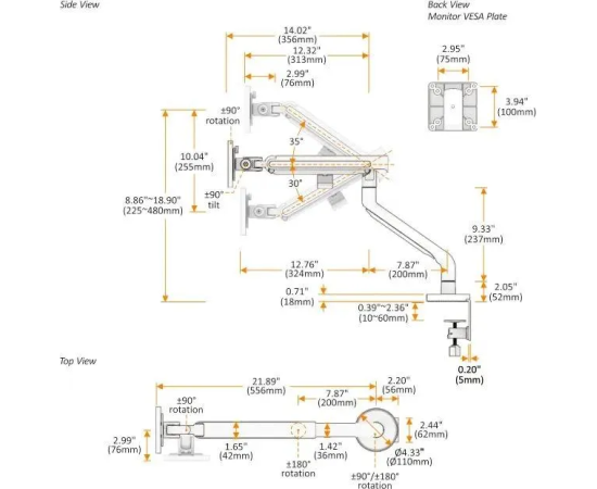 Кронштейн для мониторов Ultramounts UM725W белый 17"-32" макс.9кг крепление к столешнице поворот и наклон