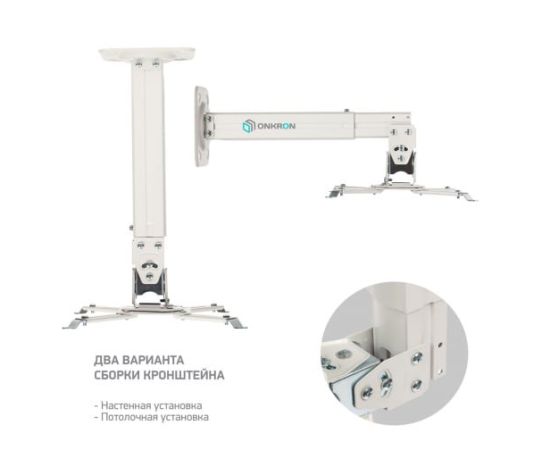 Кронштейн для проектора Onkron K5A белый макс.10кг потолочный поворотно-выдвижной и наклонный