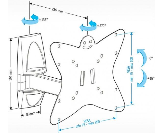 Поддержка крепления VESA 75×75, 100×100, 200×100, 200×200