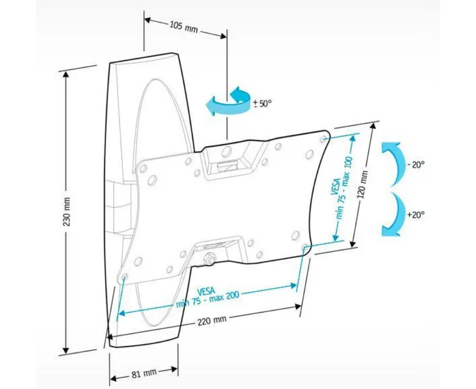 100x100 мм, 200x100 мм, 200x200 мм, 75x75 мм, VESA 75х75,VESA 100х100,VESA 200х100