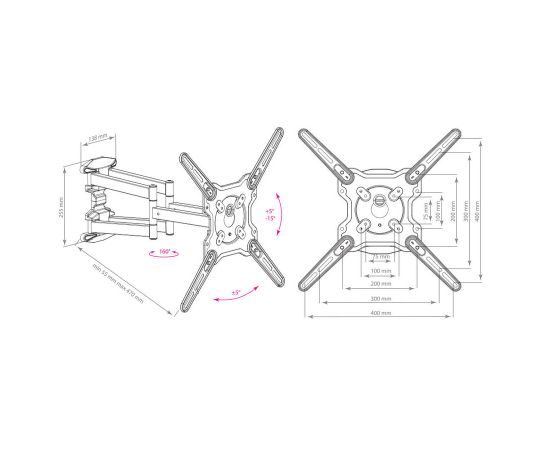 Поддержка крепления VESA 75×75, 100×100, 200×100, 200×200, 200×300, 300×200, 400×200, 300×300, 400×300, 400×400
