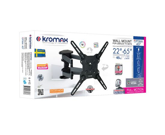 Кронштейн Kromax OPTIMA-407 серый 22"-65" макс.45кг поворот и наклон