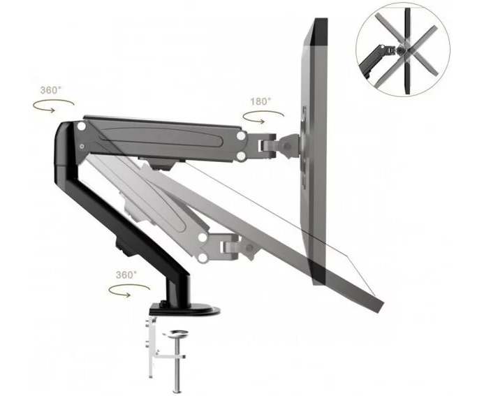 Функциональные особенности: с регулировкой поворота, с кабель-каналом, струбцинное крепление