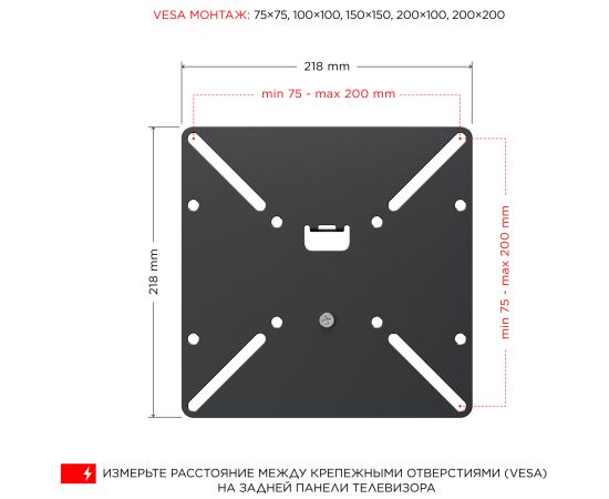 Поддержка крепления VESA: 75 x 75, 100 x 100, 200 x 100, 200 x 200