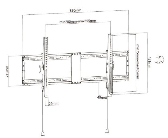Угол наклона: +3°~-12°