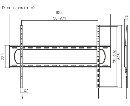 Поддержка крепления VESA: 100x100, 100x150, 100x200, 150x100, 150x150, 200x100, 200x200, 200x300, 200x400, 300x200, 300x300, 300x400, 400x200, 400x300, 400x400, 400x600, 50x50, 600x200, 600x300, 600x400, 600x600, 700x400, 75x75, 800x400, 800x500, 800x600, 900x600