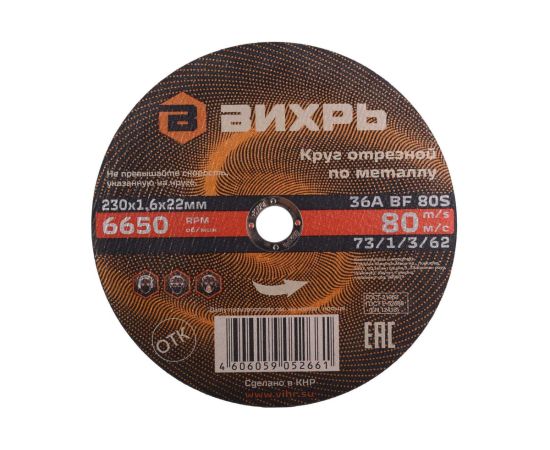 Круг отрезной Вихрь 73/1/3/62 по металлу 230х1,6х22мм