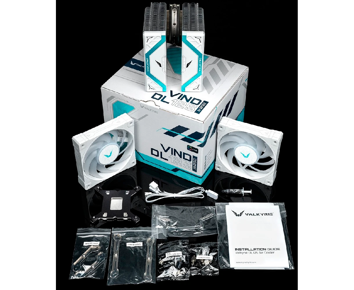 Кулер Valkyrie DL125 Vind White (HW NA125-W) / 6HPx6mm, 230W TDP, 2x120mm ARGB fans, 800-1850RPM, 80CFM, 29dBA