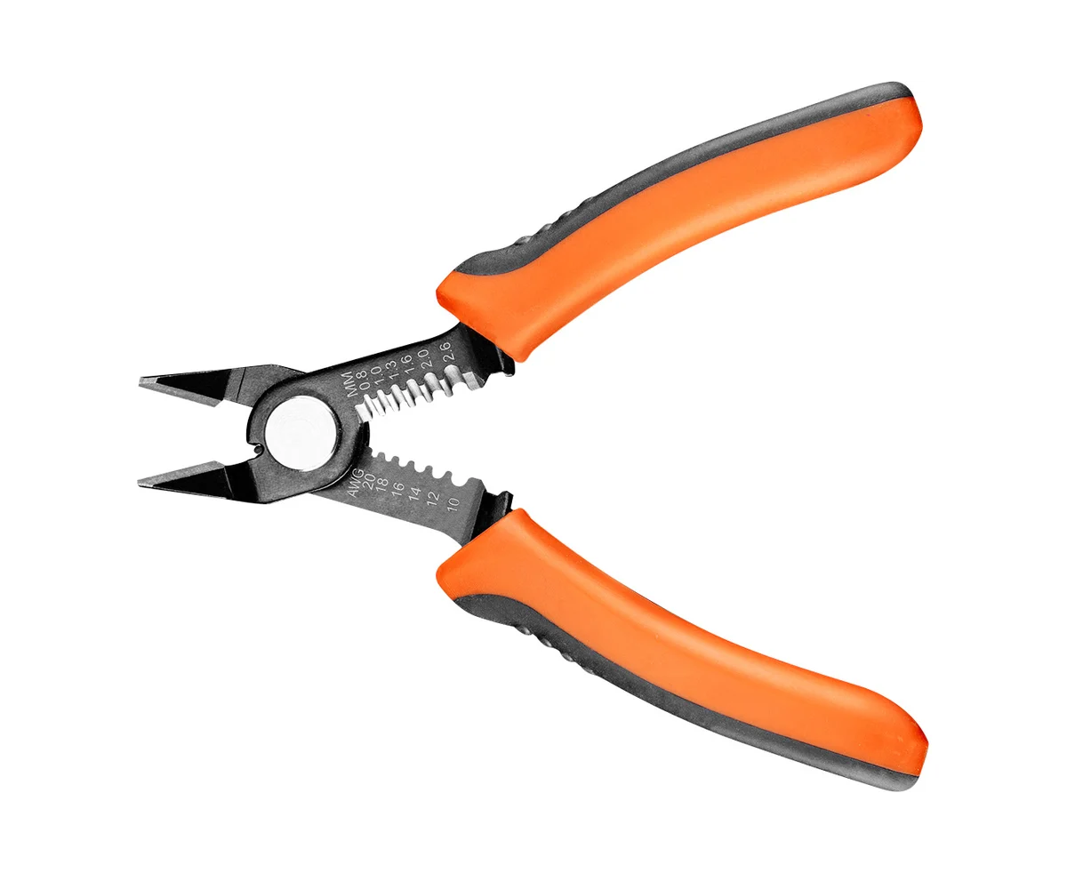 NEO Tools Кусачки боковые прецизионные 140 мм 01-509 изготовлены из высококачественной стали 65Mn, с дополнительной индукционной закалкой (50+ HRC), что обеспечивает долгий срок службы инструмента. Специально изогнутые кромки губок облегчают торцевые прецизионные резы. Инструмент в корпусе со встроенным съемником изоляции для проводов размером 0.8 - 2.6 мм (20 - 10 AWG). Двухкомпонентные, эргономичные рукоятки повышают комфорт пользования. Инструмент подойдет для профессионалов электронщиков и монтеров, а также для домашних мастеров.