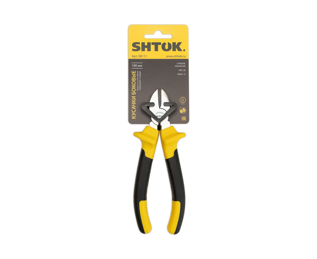 - Рабочая часть диэлектрических боковых кусачек SHTOK 180 мм 08111 выполнена из хром-ванадиевой стали;