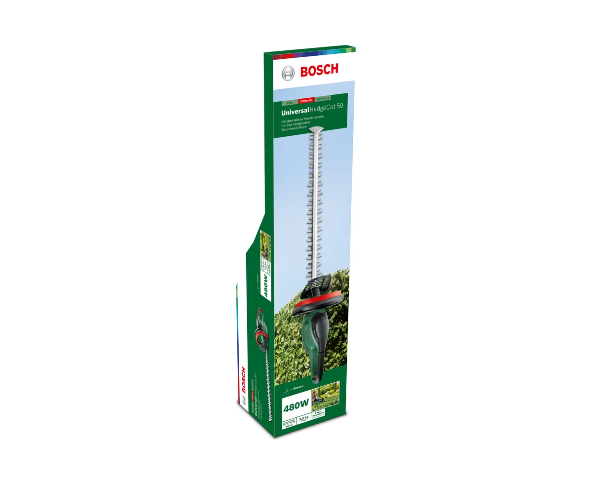Энергосберегающий двигатель мощностью 480 Вт в звукоизолирующей оболочке ProSilence 91 дБ отличается высокой производительностью при сниженном энергопотреблении и уровнем шума на 80 % ниже ведущих кусторезов Bosch.