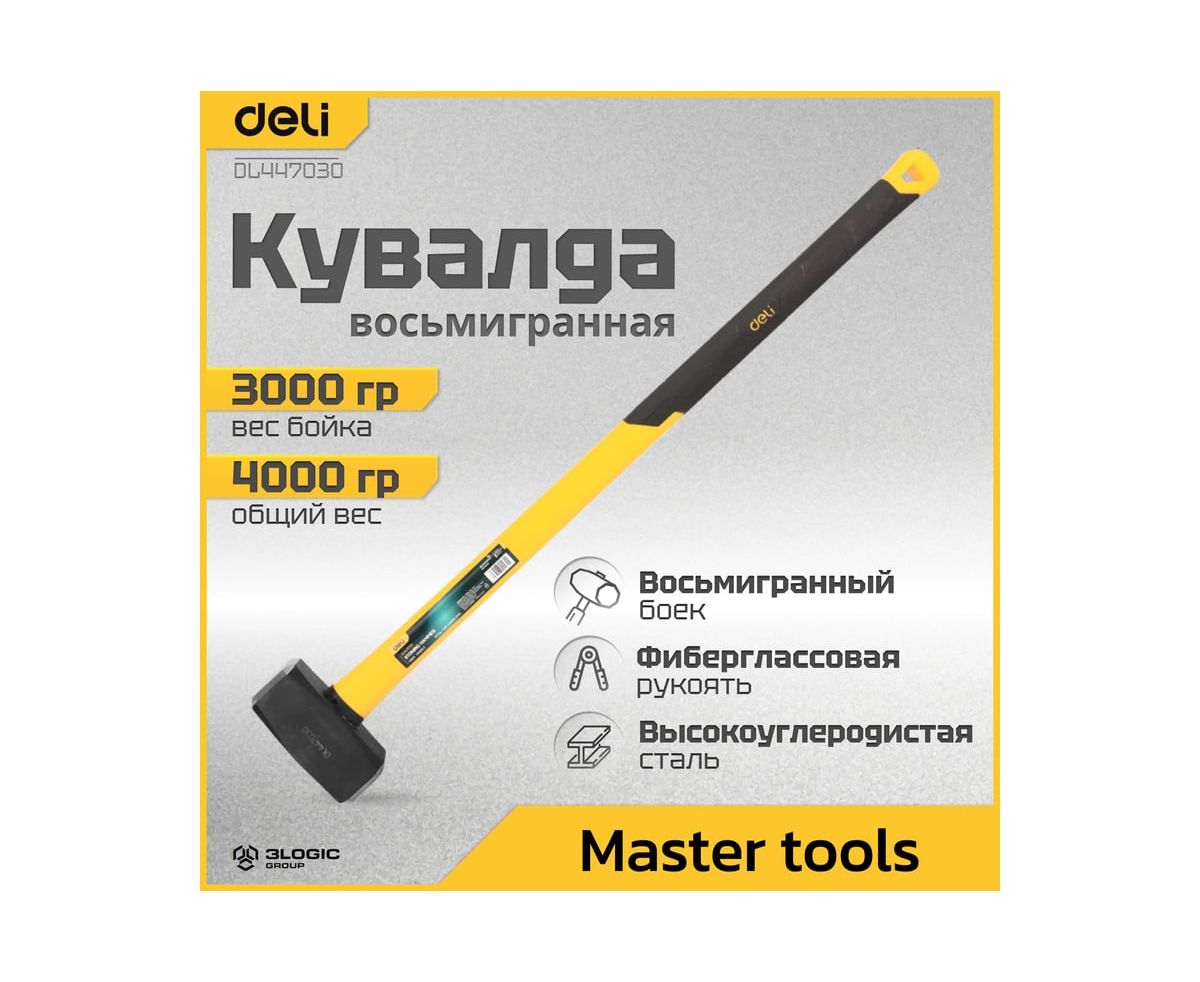 Кувалда универсальная Deli DL447030 – это инструмент ручной работы, который обычно используется для сильного удара или разрушения материалов.
