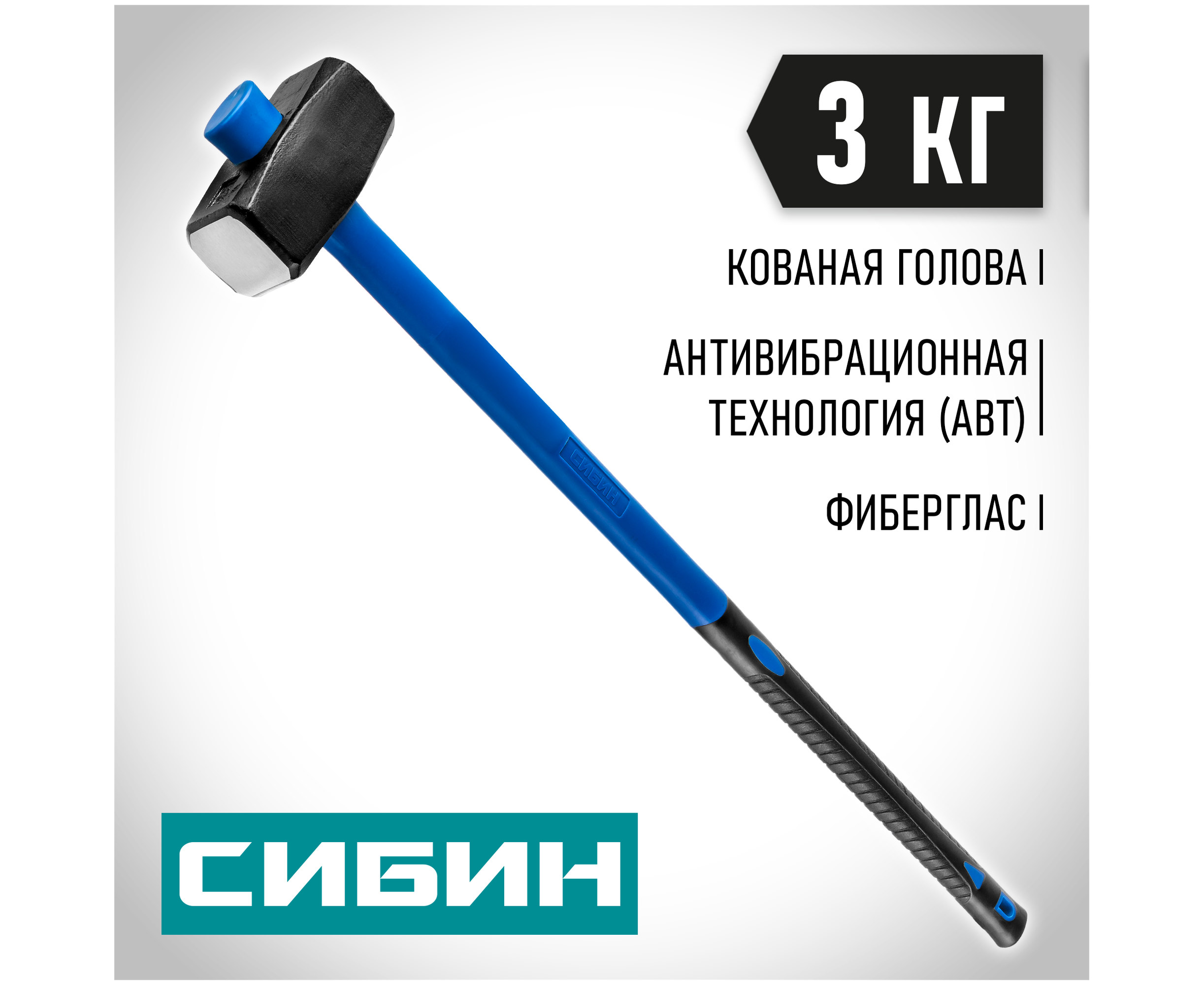 Кувалда СИБИН 20134-3 с фиберглассовой рукояткой, 3 кг