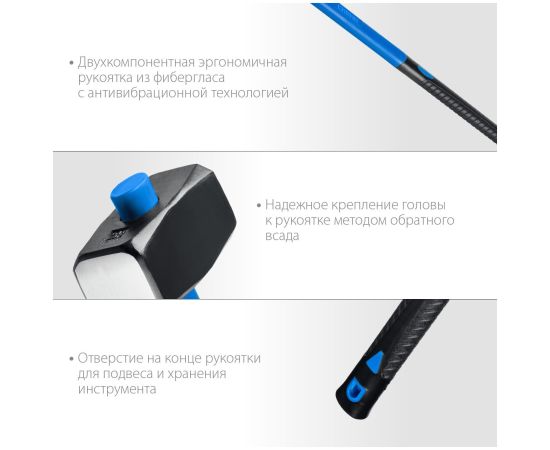 Квадратный боек упрощает демонтажные работы. Противоскользящая рукоятка исключает риск выскальзывания кувалды.