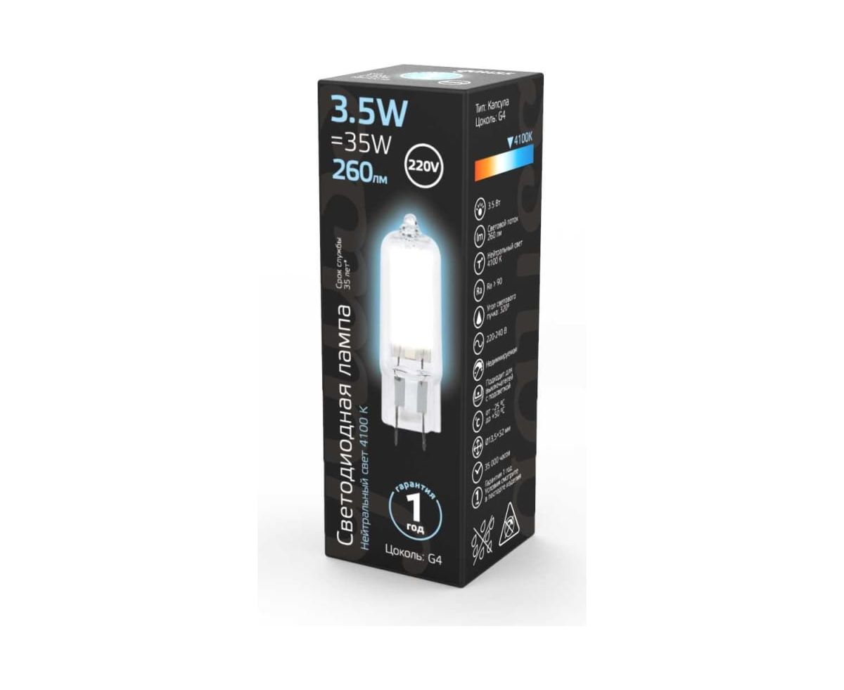 Лампа светодиодная Gauss 107807203 G4 3.5Вт цок.G4 капсула 220B 4100K св.свечения белый нейтральный уп/1шт