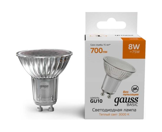 Лампа светодиодная Gauss Basic 10106182 8Вт цок.GU10 софит св.свечения теплый св/дневной