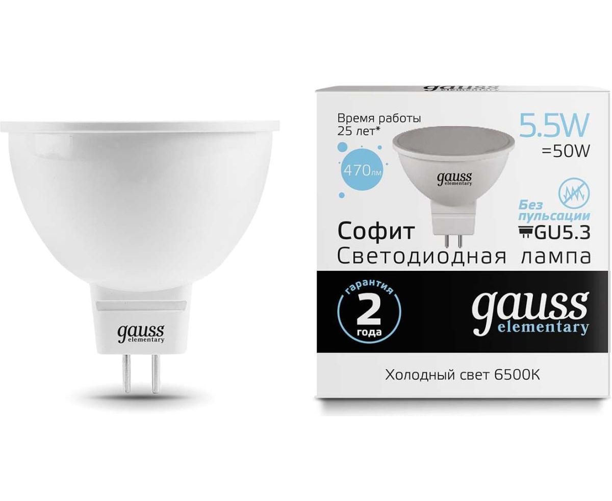 Технические характеристики Gauss Elementary LED MR16 GU5.3 5.5W 470lm 6500К 13536