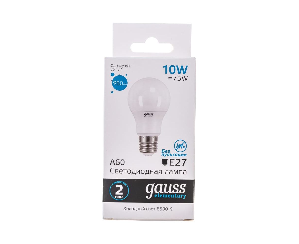 Технические характеристики Gauss Elementary LED A60 10W E27 950lm 6500K 23230