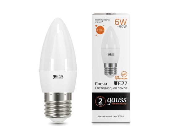 Технические характеристики Gauss LED Elementary Candle 6W E27 2700K 33216