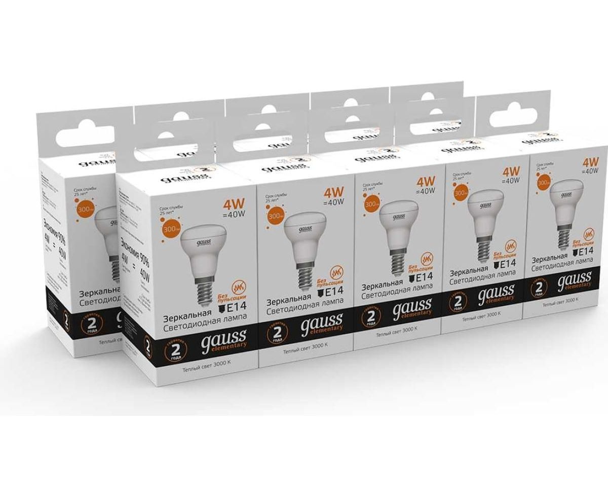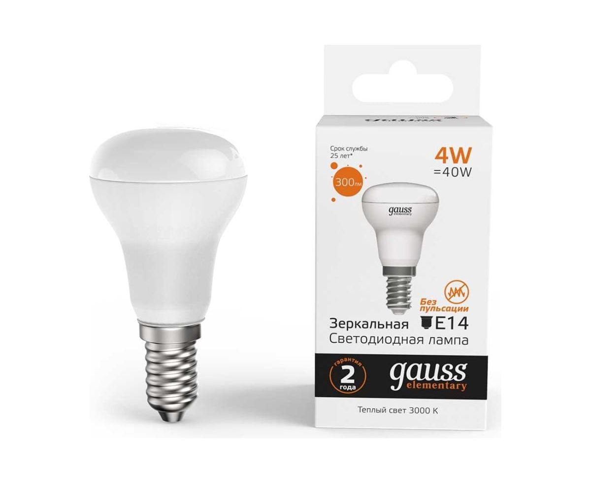 Лампа светодиодная Gauss Elementary 63114 4Вт цок.E14 рефлек. 220B 3000K св.свечения белый теплый уп/10шт