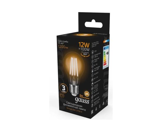 Технические характеристики Gauss Filament А60 12W 1200lm 2700К Е27 LED 102902112